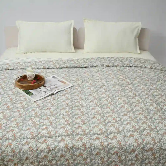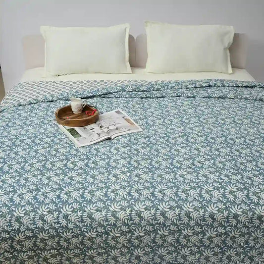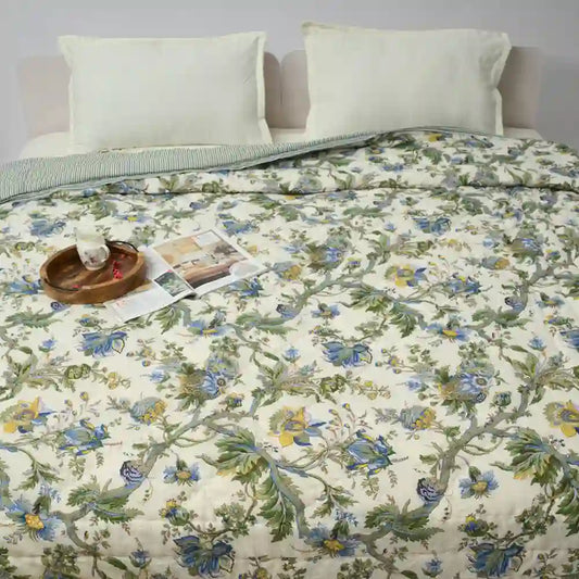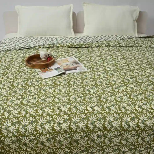 Aurora cotton filled winter print double quilt (Green)