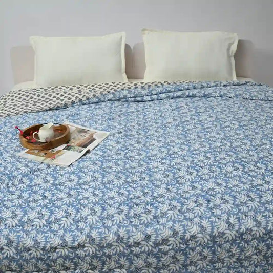 Berry Bliss cotton filled winter print double quilt (Aqua)