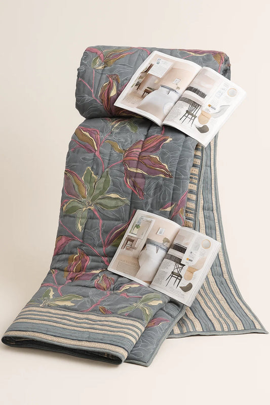 GREEN FLORAL BEDSHEET (100X100) with 2 pillow cover