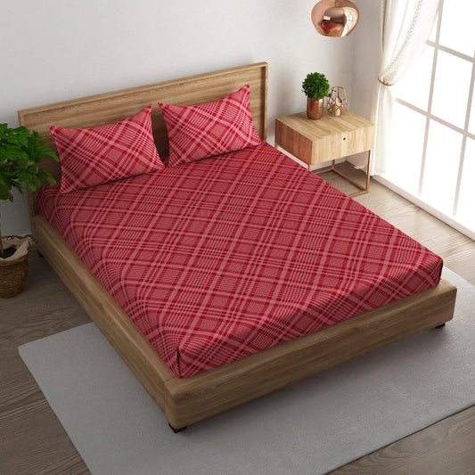 Tartan 108x108 inches Cotton Bedsheet with 2 pillow cover
