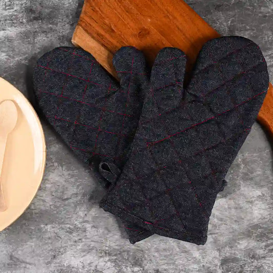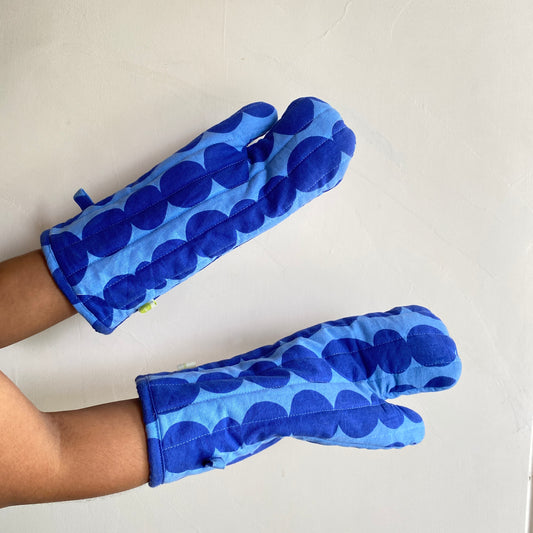 Indigo Orbit Quilted Cotton Oven Mittens – Set of 2 | Heat-Resistant Kitchen Gloves