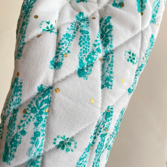 M Is for Mittens – Quilted Cotton Oven Gloves in Mint & White (Set of 2)