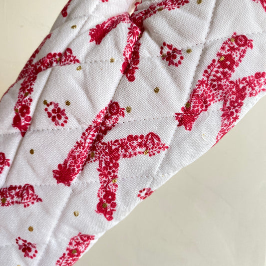 K Is for Kitchen – Quilted Cotton Oven Mitts in Coral Bloom (Set of 2)