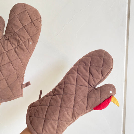 Gobble Up the Heat – Turkey-Themed Quilted Cotton Oven Mitts (Set of 2)
