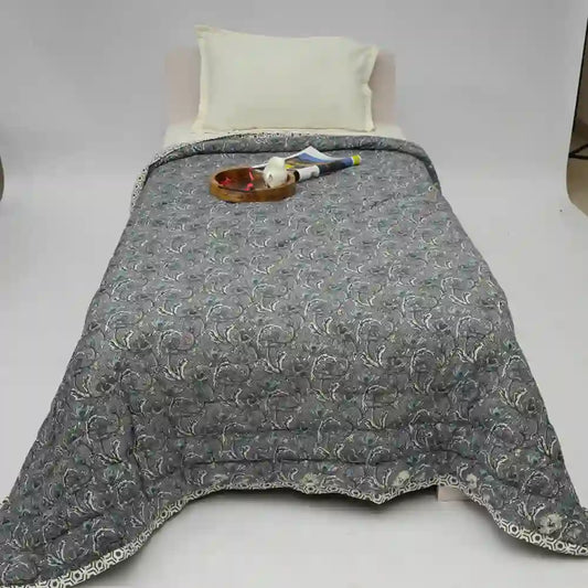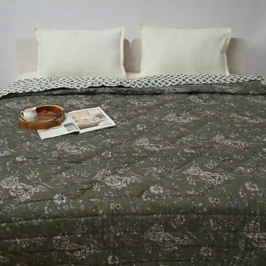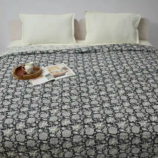Berry Bliss cotton filled winter print double quilt (Aqua)