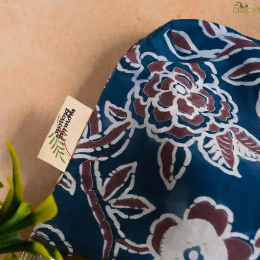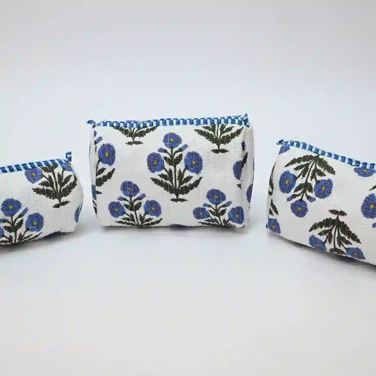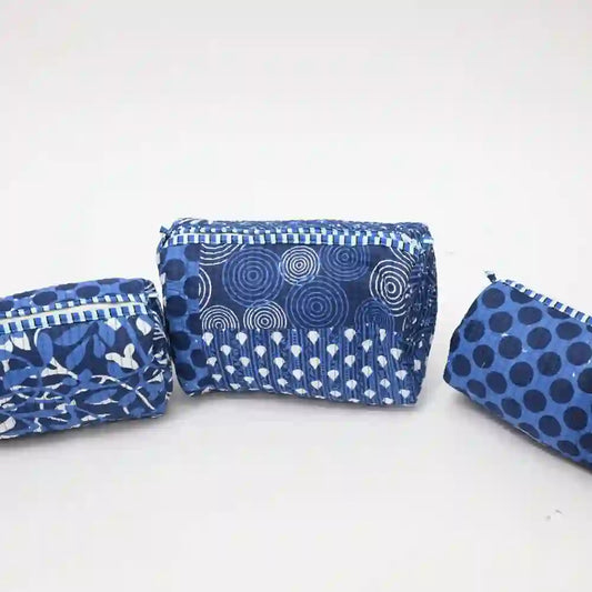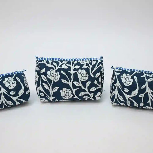 Indigo Bloom handblock quilted travel pouch (Set of 3)