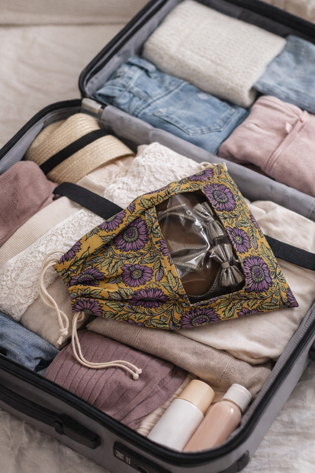 YELLOW FLORAL SHOE BAG