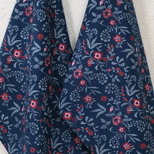 Poetic tones, softly luminous. With muted indigo, grey, and crimson florals, Twilight...